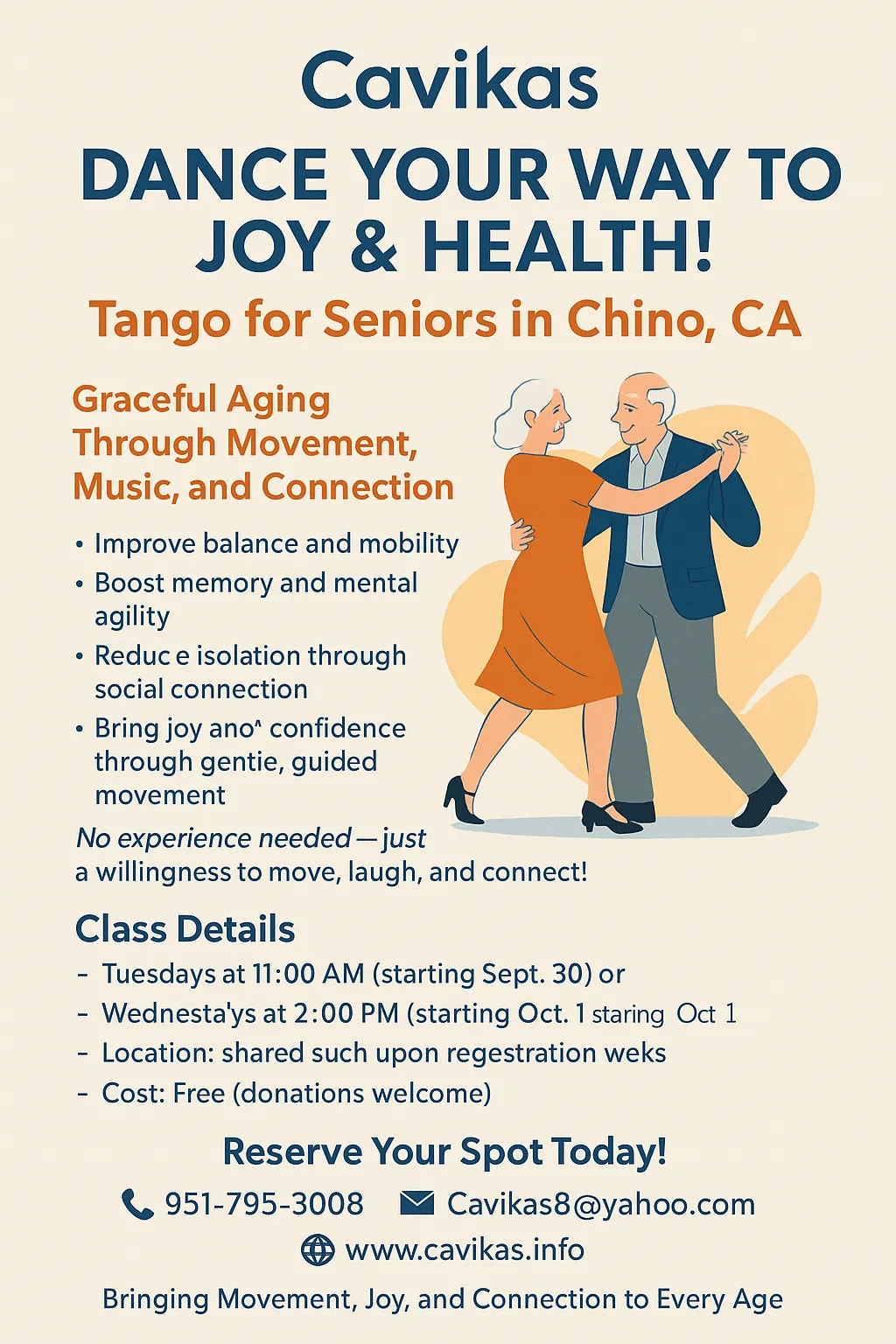 At Cavikas, we honor the wisdom and spirit of our elders by offering Argentine Tango as a joyful, accessible, and healing practice. Our “Tango for the Elderly” program is designed to support healthy aging — physically, mentally, and emotionally — in a welcoming and inclusive community.